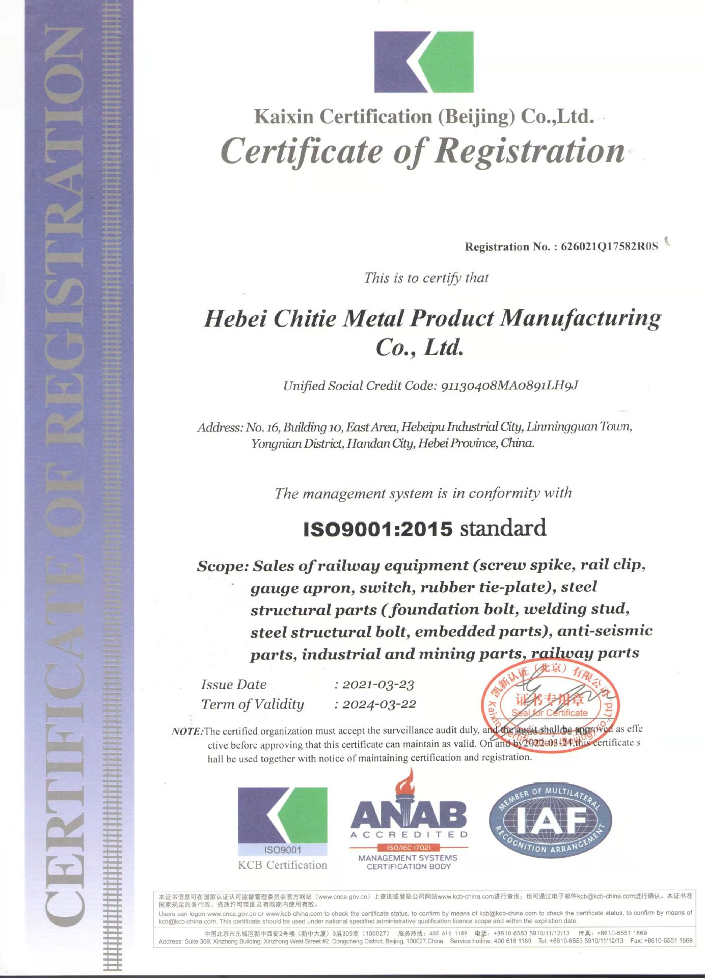 主要產(chǎn)品:鐵路配件、行車配件、工礦配件、魚尾板、道釘、壓軌器、軌道壓板、軌距拉桿、護軌扣板、T型螺栓、魚尾螺栓、彈條、軌距擋板